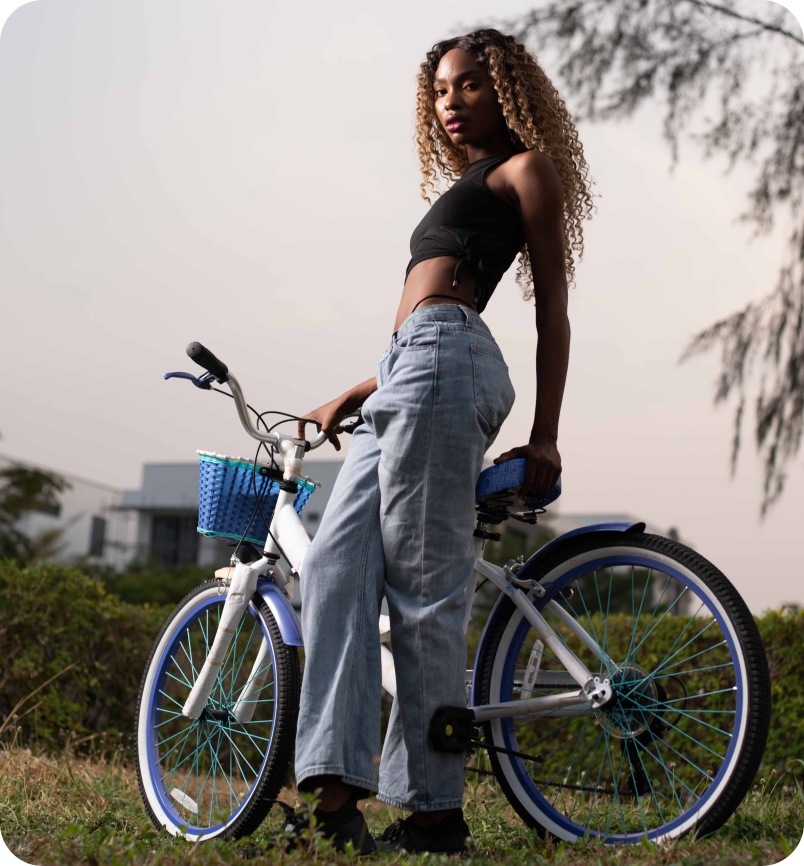 Stylish step-through city bicycle with upright handlebars, cushioned saddle and practical accessories (basket, fenders, rack) — perfect for commuting and errands.